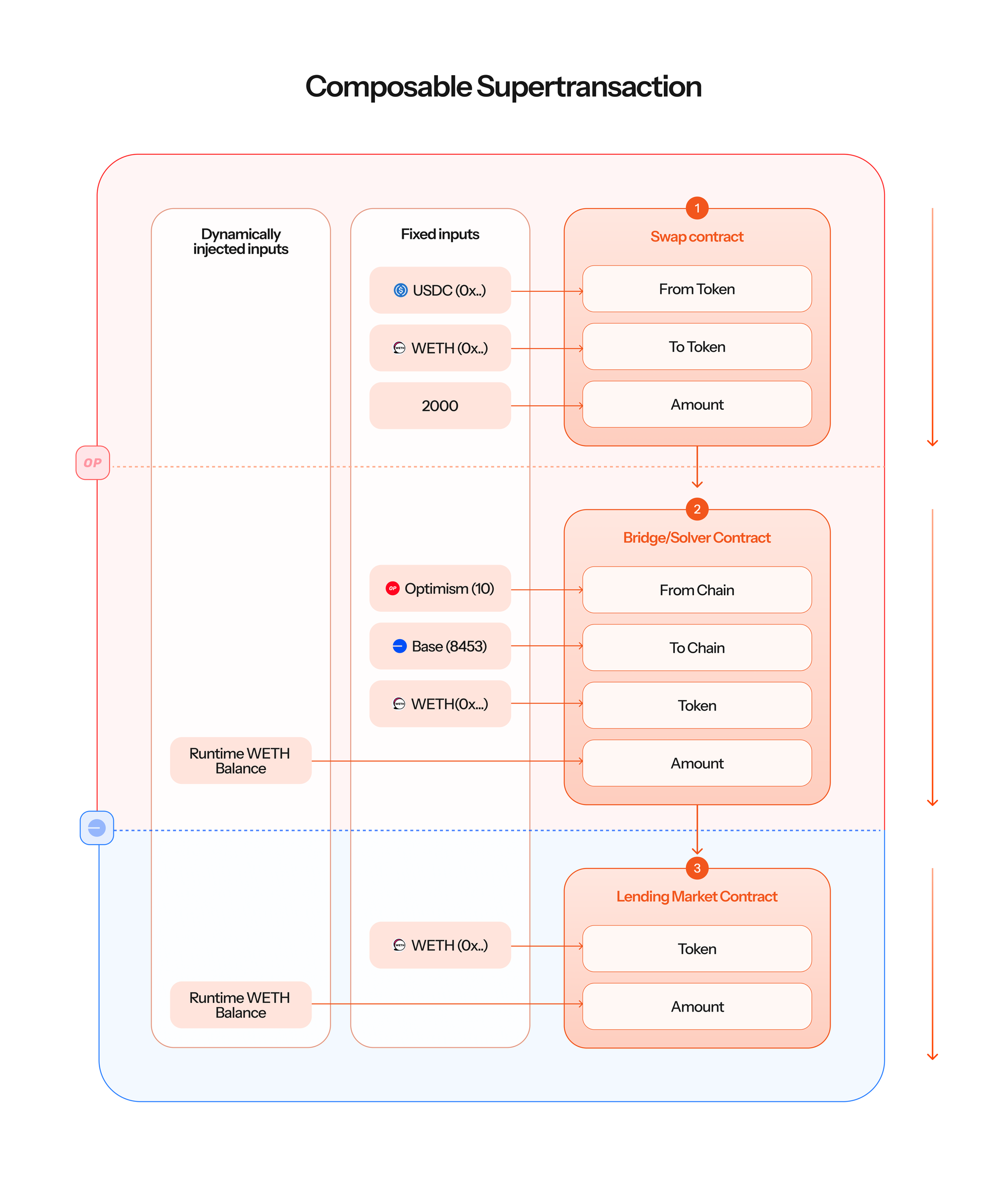 Executing multiple Instructions (transactions, message passings, moving tokens) across multiple chains comes with implicit issues of composability. Since the execution outputs of onchain transactions, bridges or solvers are not deterministically known ahead of time, it’s usually impossible to encode function callData which controls for all of those variables.